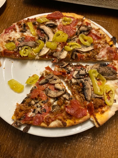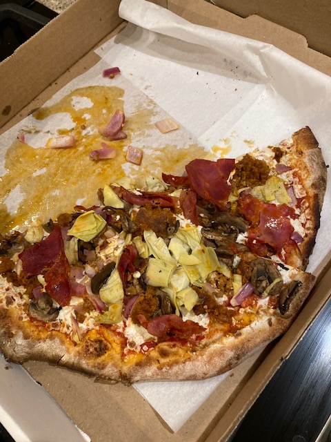 This was the last pizza of 2020–an amazing pie I sometimes neglect to revisit. Capicola, Graziano’s Italian sausage, artichoke, mushrooms, and red onion, wood-fired on a delicious thin style crust, courtesy of Centro. Hands down one my favorites.